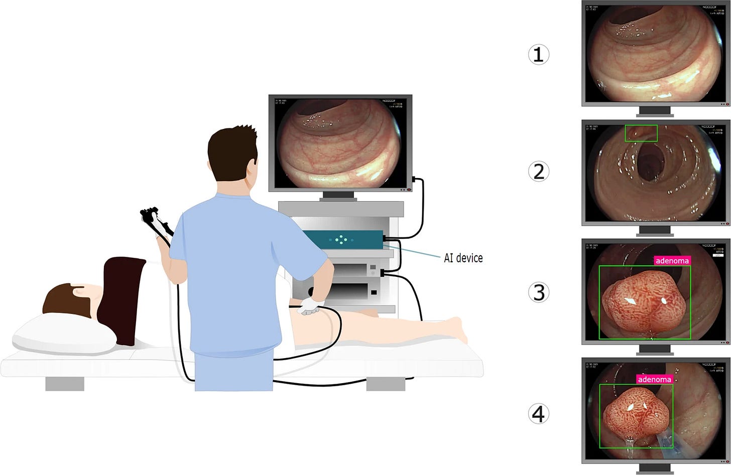 Amongst the colonoscopies performed between Sept 8, 2021, and March 9, 2022, 1443 patients underwent non-AI-assisted colonoscopy before (n=795) and after (n=648) the introduction of AI (median age 61 years [IQR 45–70], 847 [58·7%] female, 596 [41·3%] male). The adenoma detection rate (ADR) of standard colonoscopy decreased significantly from 28·4% (226 of 795) before to 22·4% (145 of 648) after exposure to AI, corresponding with an absolute difference of –6·0% (95% CI –10·5 to –1·6; p=0·0089). The authors concluded that continuous exposure to AI might reduce the ADR of standard non-AI-assisted colonoscopy, suggesting a negative effect on endoscopist behaviour.