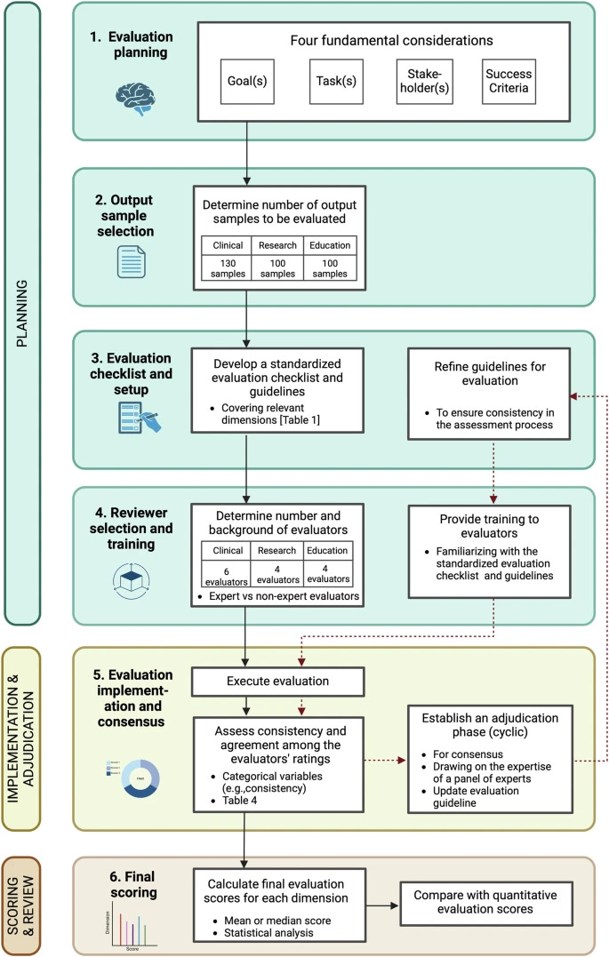 This article proposes a framework for human evaluation of large language models (LLMs) in healthcare, addressing existing gaps in current methodologies. Named QUEST, the framework emphasizes five key evaluation principles: Quality of Information, Understanding and Reasoning, Expression Style, Safety, and Trust. It aims to improve the reliability and applicability of human evaluations across medical specialties.